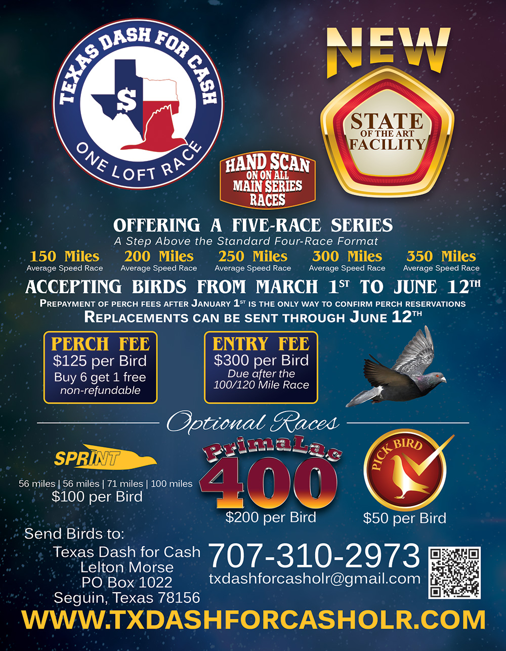 Texas Dash For Cash is a one loft race offering a five-race series, we fly north north